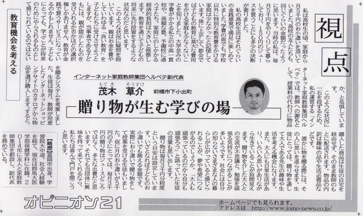 上毛新聞社様(群馬県)にて1年間コラム委員を務めました。