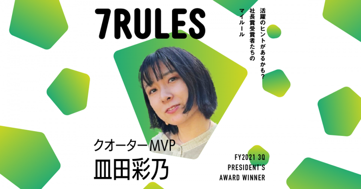 2022年に全社でクオーターにつき1名のみ選出される社長賞を受賞。 売上大幅達成だけでなく、新プランの企画立案・実施までの実績が認められました。 リンクに私の7rules書いておりますのでよかったら見てください!