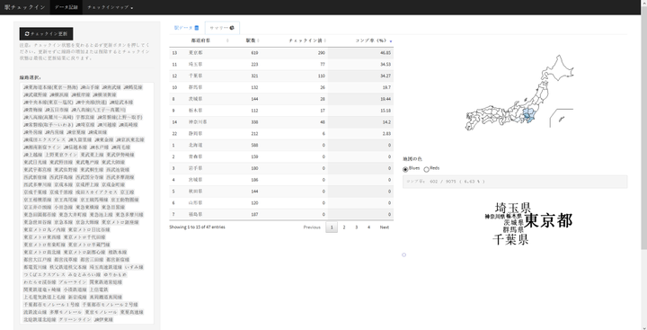 日本に実在する鉄道駅を集めて回り、行ったことがる駅の記録を可視化するウェブツール