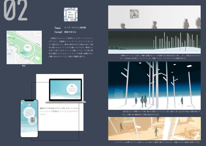 トーベ・ヤンソン美術館を設計した。白樺をモチーフとした柱が照明、空調システム等の役割を果たしている。