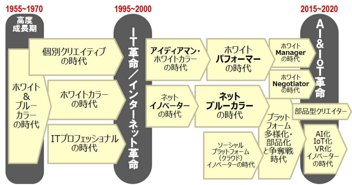 新卒で小規模なコンサルティング会社に入社してから90年代までは、主に小売業・チェーンストアのコンサルタントとしてファーム所属⇒フリーランスで経験を蓄積。 1998年くらいからインターネットブームが巻き起こると同時に、当時はSIPSと呼ばれたWebサイトの開発ベンチャーに飛び込み、ネットの世界でのビジネスモデル開発、戦略コンサル、シ