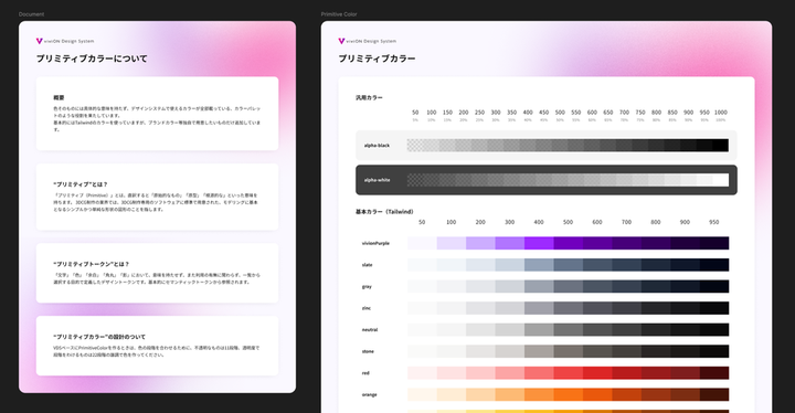 新規プロダクトの進行と同時にviviON Design Systemのトークンだけでも取り入れて進めようということになり、トークン設計などを進行。 フロントエンドエンジニアにプロダクトを横断したデザインシステムの必要性を説明し、デザインシステムを一緒に作るチーム体制を構築するなど、他職能を巻き込んでプロジェクトをリードしています。