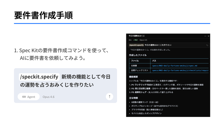全社的にAI駆動に注力することになり、全プロダクトを横断してリードするプロジェクトに参画。 横断PJのメンバーが各プロダクトに伴走し、プロダクトの開発ワークフローをすべてAI駆動に置き換えていくのをサポートするプロジェクトでした。 自分は4プロダクトを担当し、全てのプロダクトの開発ワークフローをSpec Kitを用いた仕様駆動開発(SDD)ワークフローに置き換えることができました。 現在はさらに先のステージを見据えて、SDDのレベル深化やAI-DLCの導入なども進めています。 プロダクトだけでなく、人自体をAI時代に適応させるため、初心者向けのワークショップを企画・実施もしました。