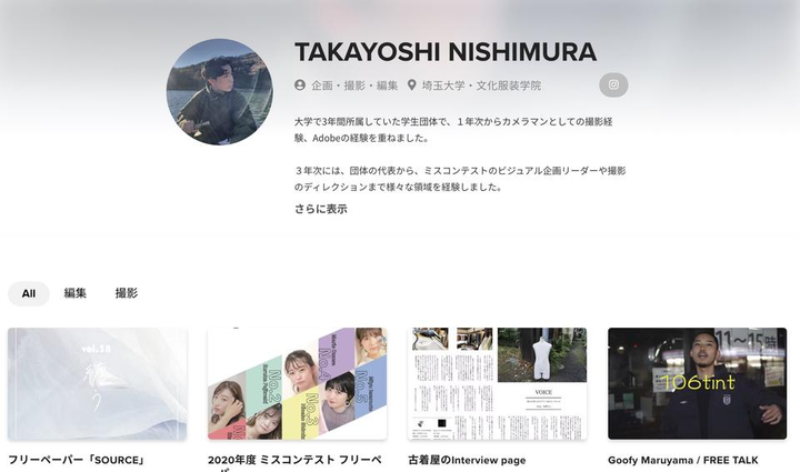 [団体の活動] 学内ミスコンテストの企画・運営 学内フリーペーパー「SOURCE」を年に5回発行 大学周辺企業様との共同イベントや共同企画 大学全体の新入生イベント・音楽イベントの企画・運営 [個人の活動] 1年次 カメラマンとしての仕事を中心に、ミスコンテストの運営に主体的に携わる 2年次 ・メインカメラマンとしてミスコンテストのプロモーション企画を担当 ・学内フリーペーパーで埼玉大学のファッションスナップを毎号作成 ・ファッションをテーマにフリーペーパーを作成 ・学年代表として、諸活動の中心に立つ 3年次 ・団体代表となり、組織の中心として支える ・既存から大きく変わった、容姿や性別に囚われないコンテストを企画・運営 ・撮影・企画だけでなく、プロモーション動画の編集・作成などにも取り組む ・大学周辺の企業や飲食店との連携などを積極的に深めた *過去に私自身が製作したページや動画については、履歴書と共に送付させていただいたポートフォリオでまとめております。それぞれの作品のページに、想いや制作過程についてもまとめておりますので、是非そちらもお読みいただけると嬉しいです。社会で通用する経験やスキルと言うには未だ未熟な部分が多々あると思いますが、是非一度ご覧いただけましたら幸いです。