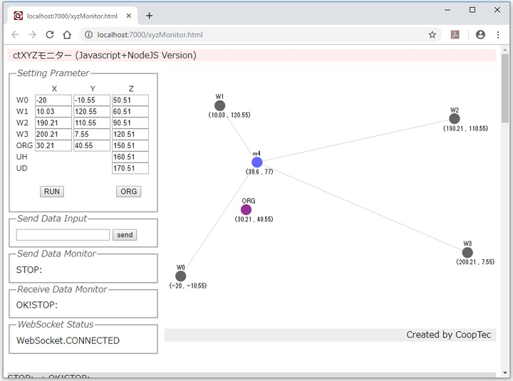 2次元XY座標リアルタイムモニターをWebアプリ(node.js)で作成