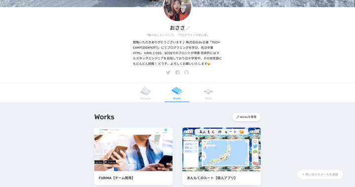 WEBポートフォリオサイト「RESUME」を用いたポートフォリオです