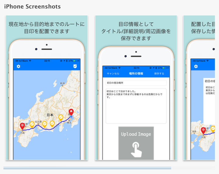 方向音痴の人のためにアプリを作りたいと思って開発しました。 まだまだ追加したい機能があるものの、まずは最低限の機能に絞っています。 ・現在地から目的地までの歩行ルートを表示 ・マップ上に目印ポイントを記録する機能(写真 / 詳細メモの記録機能)
