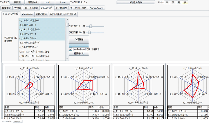 アンケートデータの分析において、データの深堀が必要であるとのコンセプトのも、データの深堀をメインにしたアンケートデータ分析ツール。 変数の絞り込みやまとめ上げでき、クロス集計、クラスタリングから、テキスト分析ができる。(sliverlight製)