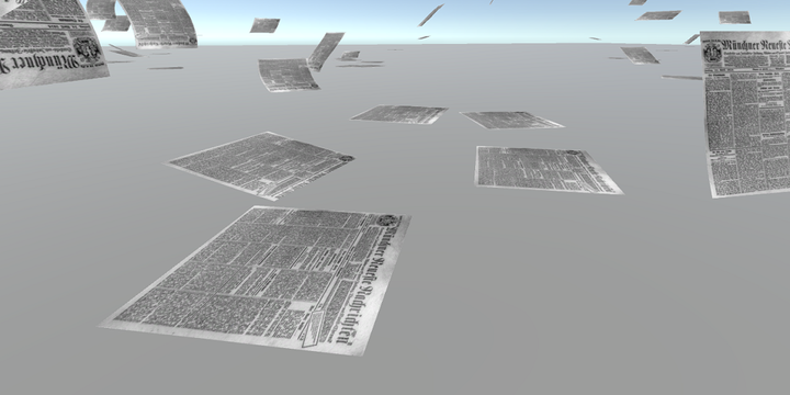 大量の紙をばらまくパーティクル(+ 動きをつけるShader)です。デフォルトで床や壁との衝突判定がついています。Shaderの勉強の一環として作成しました。BOOTHで無料公開もしています。最近、DL回数が50を超えました。