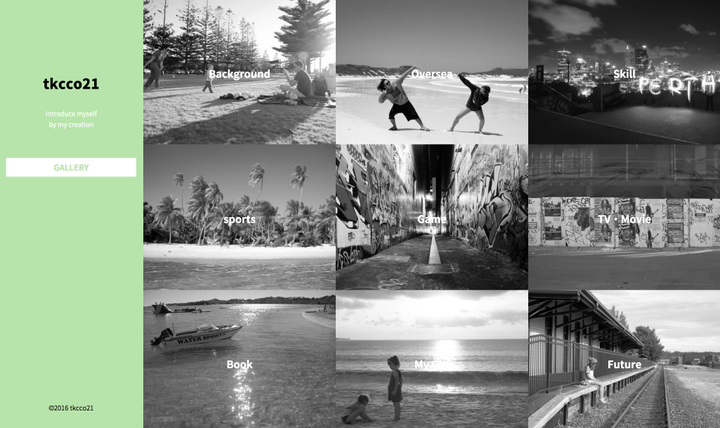 エンジニアになって半年で作成した発表用の自己紹介ページ。 ※ 中身は作った当時(2016年)のままです。
