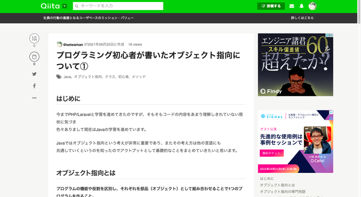 Javaを学んでいく上で大切なオブジェクト指向の考え方についてまとめました。 現実世界で起こっていることをプログラミングの世界へ持ち込むという考え方が個人的には腑に落ちました。
