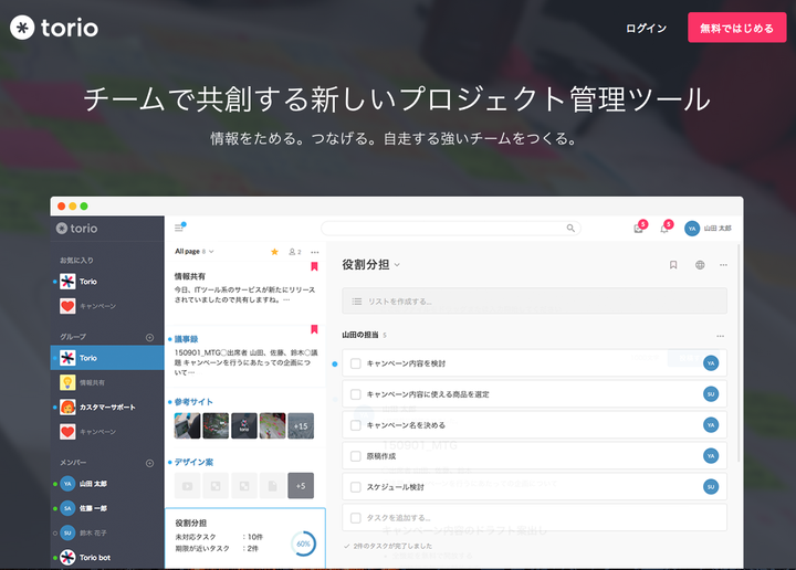 少人数のプロジェクトやチーム作業の進捗管理をする時に、たくさんのツールを使っていて管理が大変だったり、大企業向けのツールだと多機能すぎて難しく使いにくいという声をよく聞きます。 そんな声にお応えしてアスニカは、最低限の機能を組み込んだ、プロジェクト管理の情報を一元管理できるツール「torio」を開発いたしました。torioはWEB上で動くツールで、とてもシンプルで簡単に情報を共有できます。