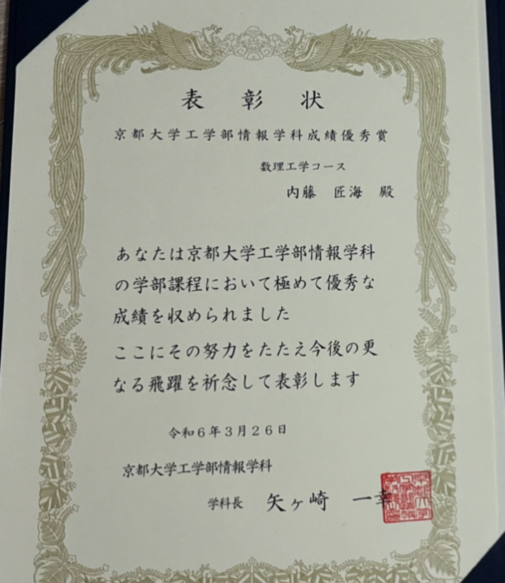 統計・機械学習の研究室に所属。統計学と情報学全般(基礎)の理論面を深く学びました。4回生の冬に論文執筆をしました。