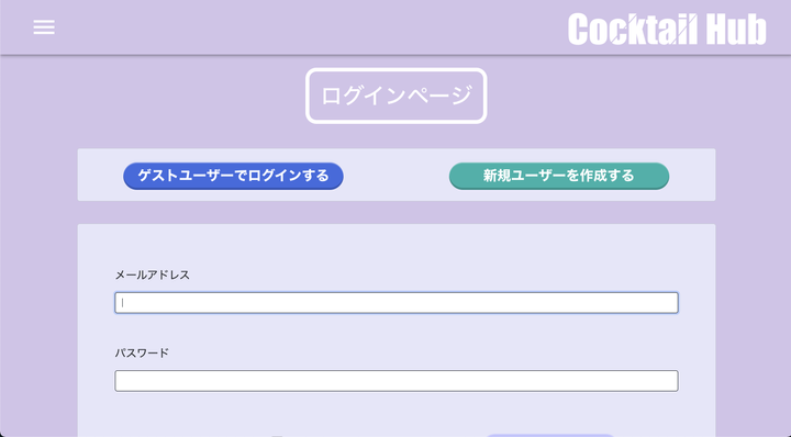 誰かの投稿を見て今日の飲み物を決めてみたり、 沢山の人に自分のオリジナルのカクテルをシェアできるアプリです。 ・バックエンド (Ruby, Rails) ・フロントエンド (TypeScript, Vue.js) ・開発環境 (Docker) ・インフラ (AWS各種サービス VPC, EC2, RDS, ELB, ACM, S3, Route53) ・CI/CDパイプライン (CircleCI) を主に使用し、開発を行いました。 (現在就職活動を終了しており、アプリの公開は停止しております) 【アプリの使い方】 ・非ログイン状態でも投稿の閲覧が可能です、 ログインすると新規投稿や投稿へのいいねやコメントなどが可能になります。 ・ログイン画面の「ゲストユーザーでログインする」ボタンから 簡単にゲストログインできます、本アプリをチェックする際にご利用ください。 ・メールアドレス(admin@example.com)、 パスワード(00000000)で管理ユーザーとしてログインできます。 ・管理ユーザーは、 他のユーザーやその投稿、コメントなど全てを削除できる権限を持ちます。 ・本アプリはスマートフォンからもご利用いただけます。