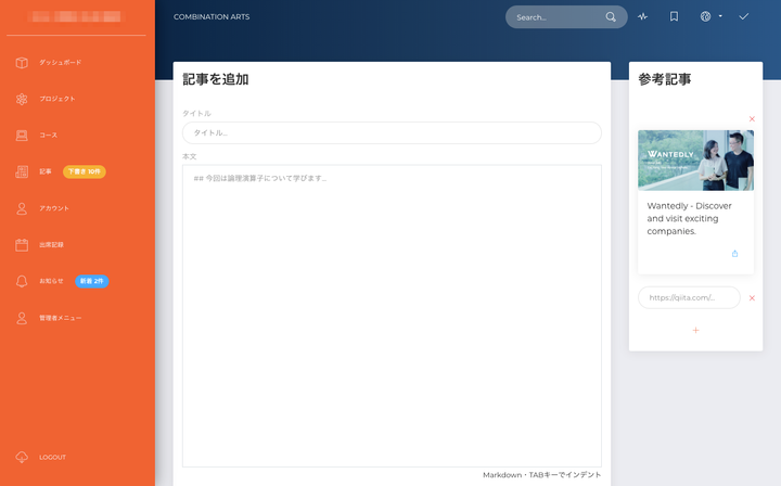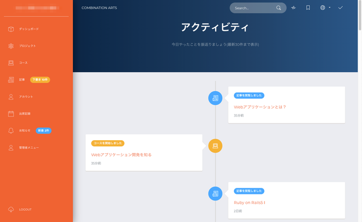コンテンツ投稿型のプログラミング学習サービスです。 OITA CREATIVE ACADEMYで使用するために作成しました。 タイムライン、学習理解度の管理、ブックマーク、お知らせ機能などがあります。 許可された方しか使用できません。