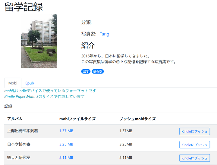 Python + Django + Mysql + MailServer で作った、ギャラリーや本を共有し、Kindleデバイスに送信するウェイブアプリです。 ギャラリーをアプロードしたら、ファイルは自動にmobiやepubのフォーマットに変換されます。変換されたファイルをダウンロードするやKindleに送信することができます。