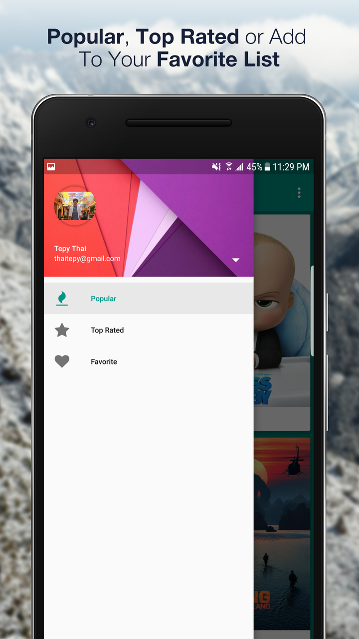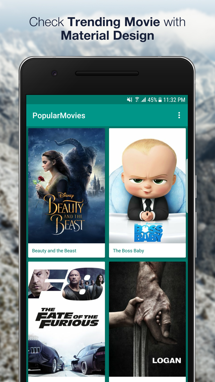POPULAR MOVIE RETRIEVES MOVIES'S DATA FROM TMDB'S API AND IMPLEMENT THEM IN A FASHION WAY WITH ANDROID MATERIAL DESIGN INTERFACE