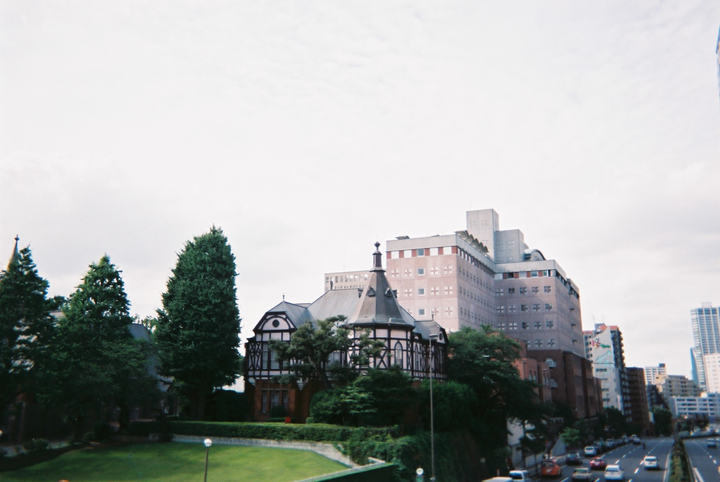 本学を歩道橋の上から撮影しました。 使用カメラ:写ルンです シンプルエース 27枚