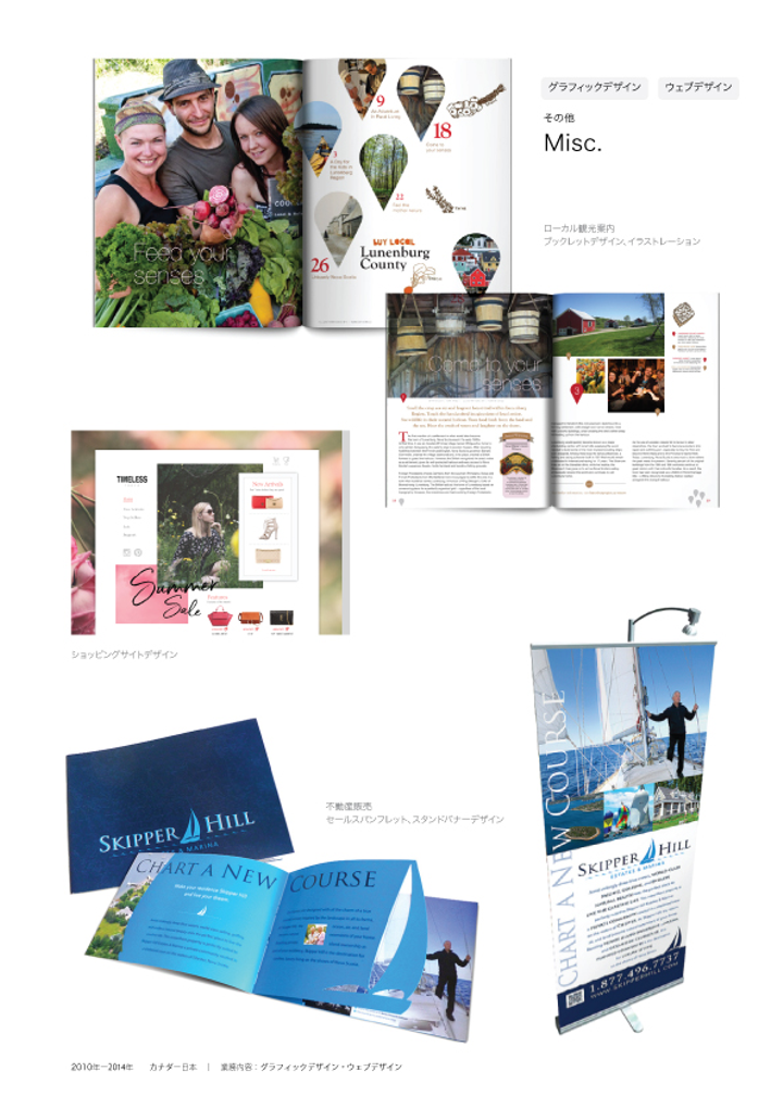 カナダのデザイン会社での紙媒体(イラスト含む)やウェブ作品