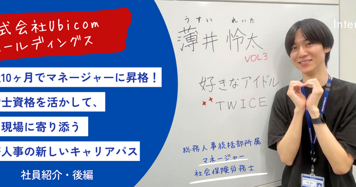 【Ubicom社員紹介・後編】入社10ヶ月でマネージャーに昇格!社労士資格を活かして、人と現場に寄り添う総務人事の新しいキャリアパス