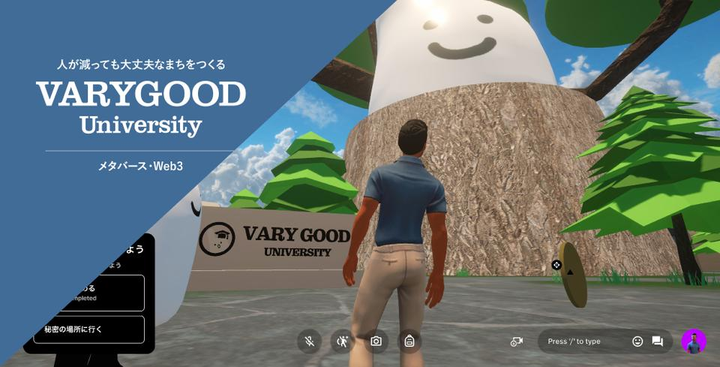 メタバース「ばりぐっど大学」の制作 人が減っても大丈夫な社会を目指す「ばりぐっど大学」 大友は本チームメンバーの一1人として長崎県西海市及び株式会社西海クリエイティブカンパニーの取り組むメタバース「VARYGOOD UNIVERSITY」の制作をメンバーと共に行なった。 西海市の関係人口増加と持続可能な社会に向けたあらゆる取り組みのハブとして機能が期待されており、今後も持続的な開発に取り組んでいく。 プラットフォーム:Spatial(2023年12月現在) 開発:Unity , Blender 公開:2023年10月