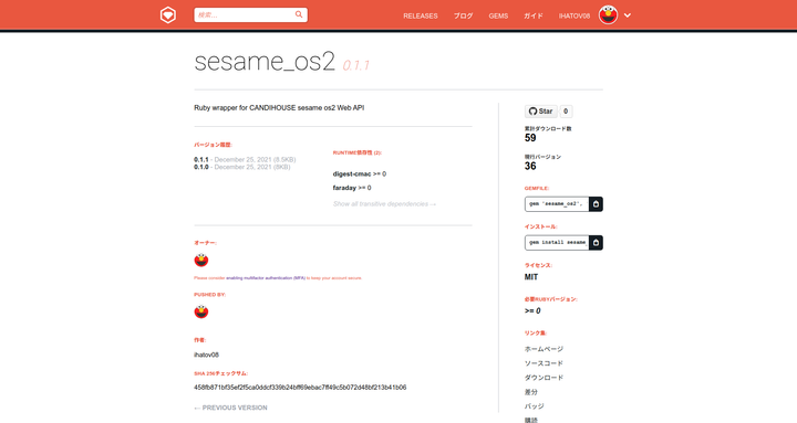スマートロックsesameのWebAPIを実行できるruby wrapper gemです。