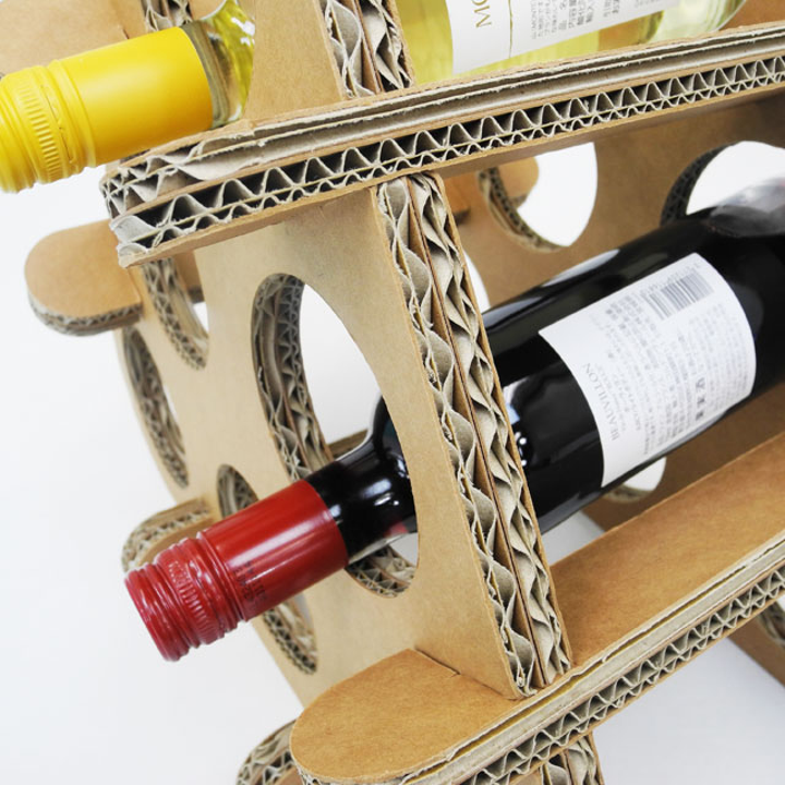 段ボールで作ったワインラックです。組立簡単。ノリもハサミも不要です。W段/E段使用。