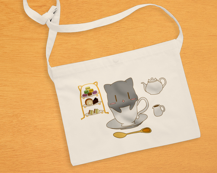 私たちの学校のコースで一ヶ月学内ショップを開店することになり、そこで商品デザインを担当した際に作成したものになります。 ショップテーマのアフタヌーンティーから自由気ままで優雅な猫を連想したので、猫がお茶会をしているというイメージでデザインをしました。