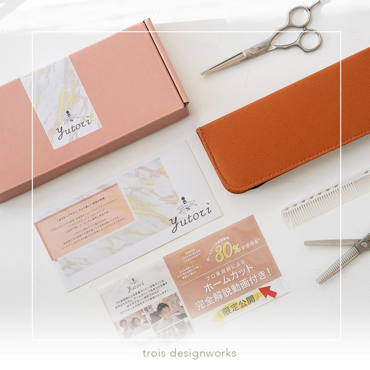 ヘアプロダクトブランド「yutori」様のシザーセットのパッケージデザインを担当いたしました。