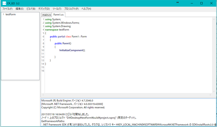 高校生の時に製作をしたC#の開発環境。UIのデザイナーをもちWindowsFormアプリケーションの作成やWPFアプリケーションの作成が行うことが出来た。