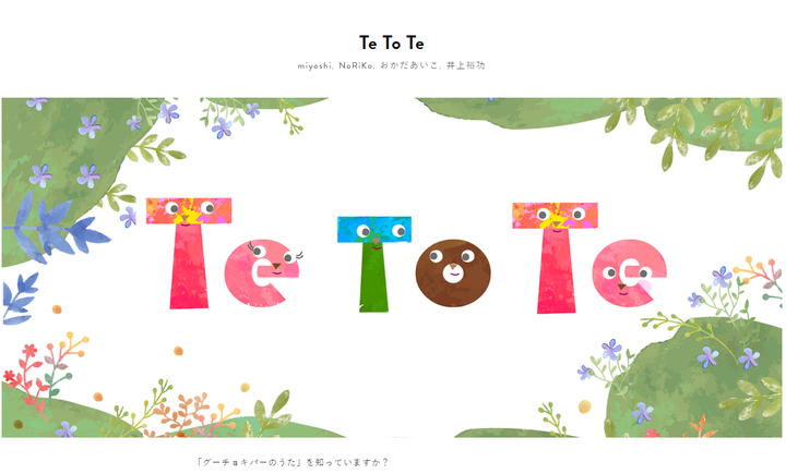 子供向けのインタラクティブアート作品。 「グーチョキパーのうた」を知っていますか? 「グーチョキパーのうた」は、 右手と左手のグーチョキパーの組み合わせから、 様々なモノを表現する手遊び歌です。 もし、表現したモノが現実に現れたら魔法使いになったようで楽しそうではないですか。 そんな想像を現実にする遊び それが、「 Te To Te 」 です。 手の形状認識は「Leap Motion」を使って行い、 手の形の組み合わせによって、様々なキャラクタが画面内に現れます。 手書きのデータを予め取り込んでおけば、 自分で書いた絵が画面内に現れ、まるで生きているかのように動きまわります。