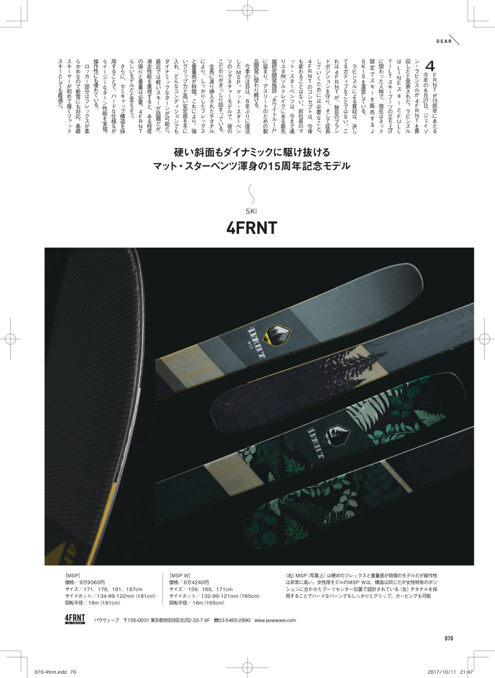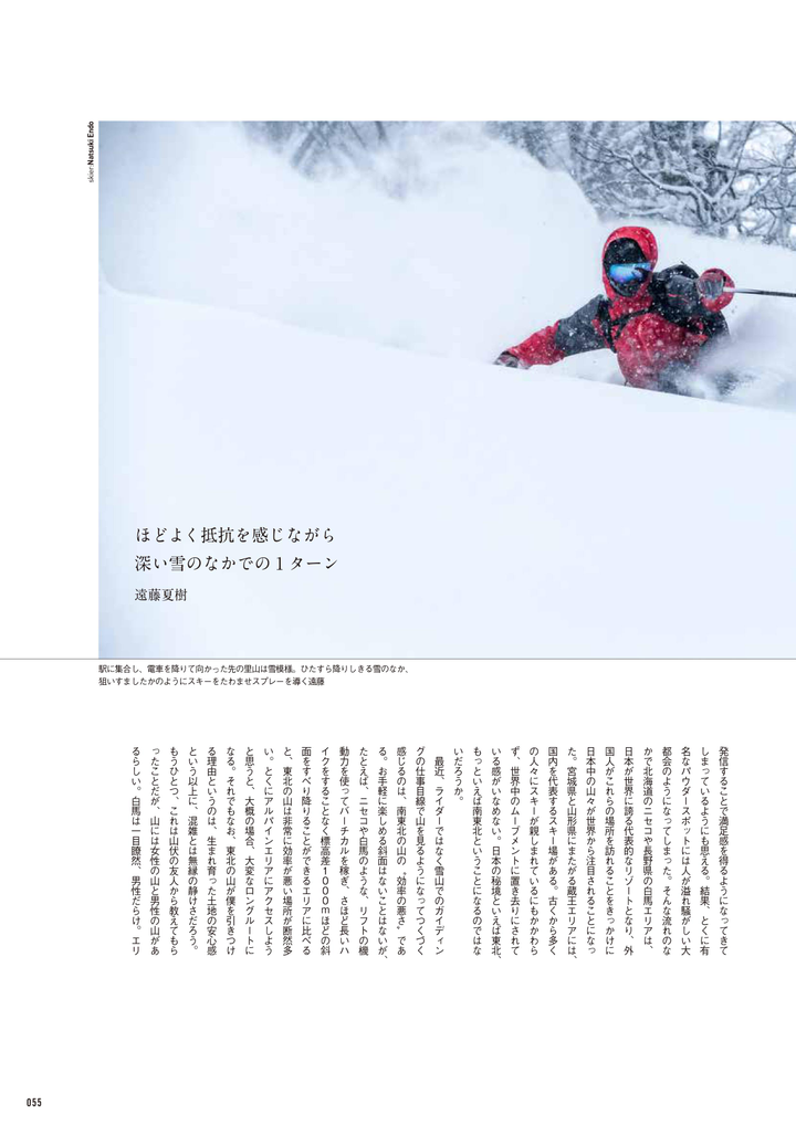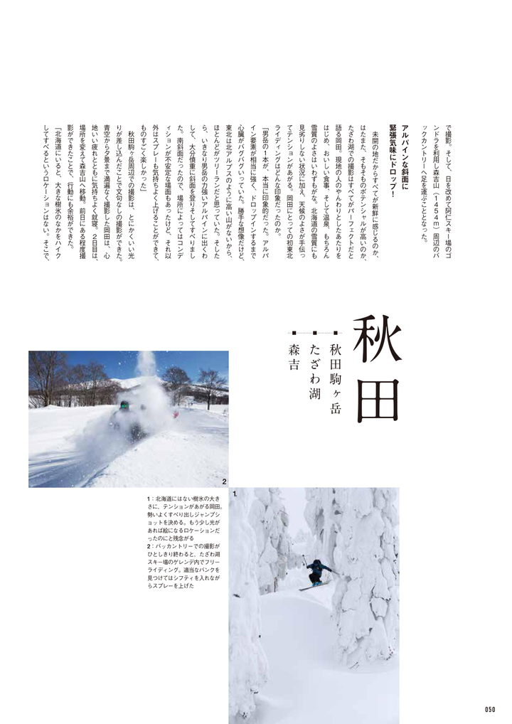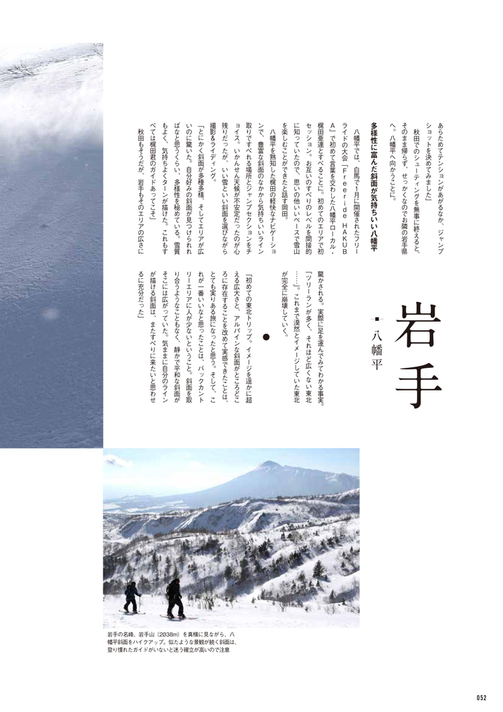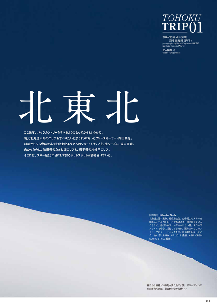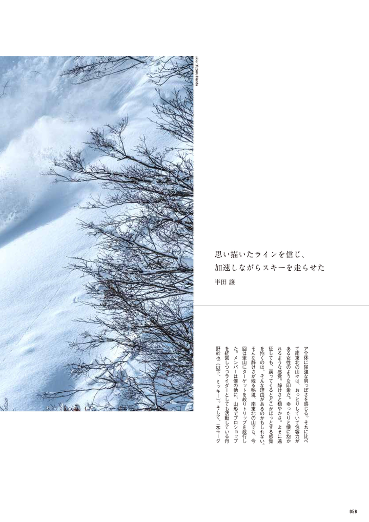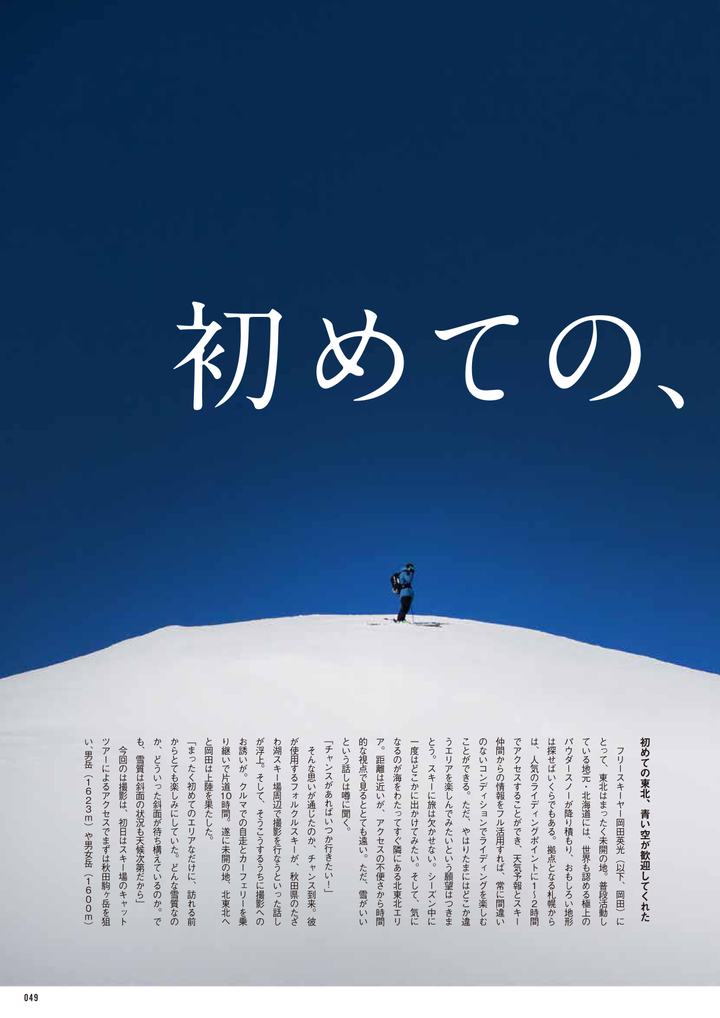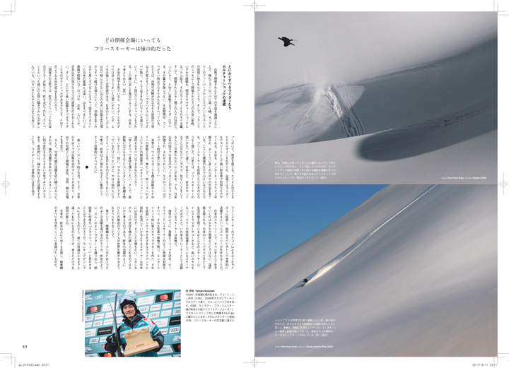 バックカントリースキー、パウダースキーを楽しむための情報を紹介する雑誌。 2004年9月に創刊され、年1冊のペースで製作されたコススキーヤー向けの雑誌で、2015年から休刊となる2017年9月発売号まで編集長として携わる。半分以上の原稿を自ら執筆し、広告営業もすべて行う。