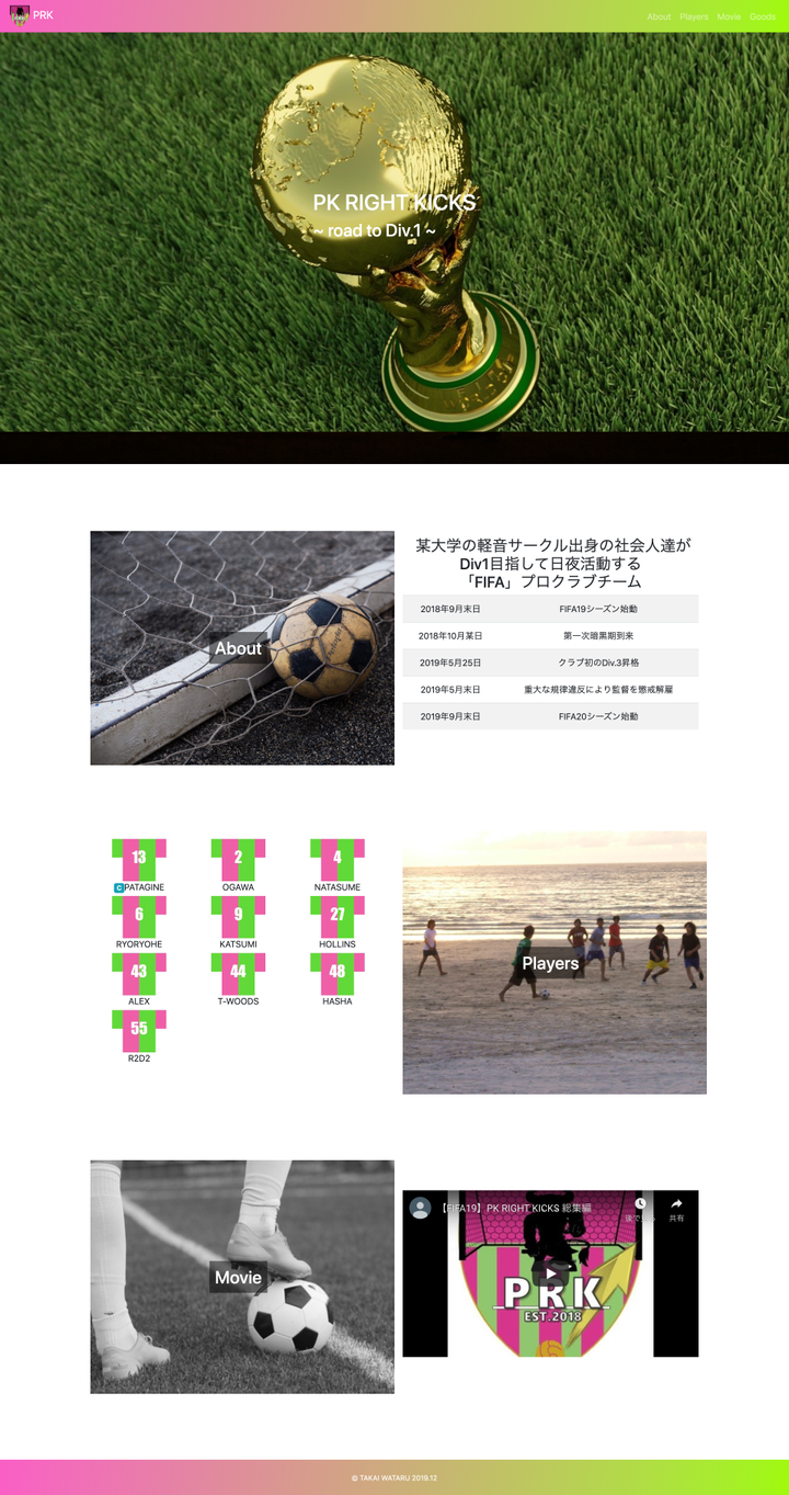 趣味で所属しているeスポーツアマチュアチームの紹介LP HTML,CSS練習用として作成 jQueryとvegasによって動きをつけている。