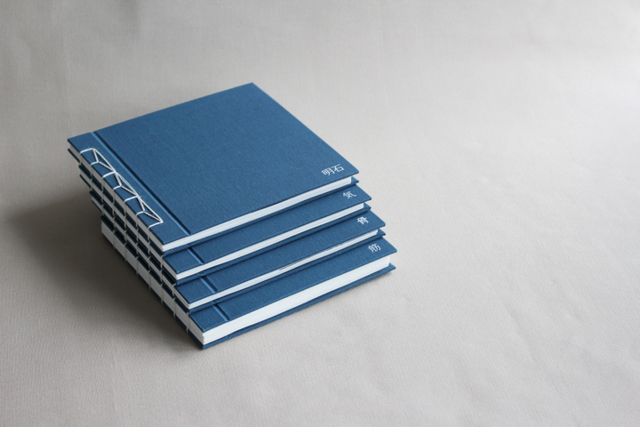 モリサワの書体である明石に対する研究分析をまとめた見本帳。 書道の視点をとって、文字の「骨(骨格)」「筋(肉つけ)」「気(組まれた時の流れ)」を分析し、明朝体の骨格を持ちながらも、楷書体にヒントを得て、人間味のある肉つけ方を施され、さらに縦読みされる場面を見込んで、宋朝体組版を読む経験を蘇らせるように、筆画方向を微調整して流れを作るなど、書体の秀逸さを凝縮した四冊です。