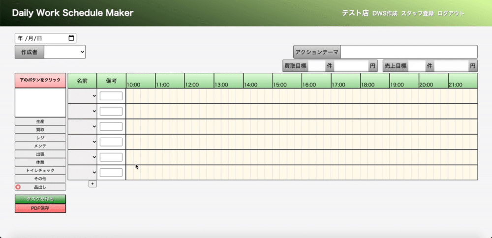 チームスケジュール作成アプリケーション。 感覚的な操作でのスケジュール作成を目的としたツールです。 現在もフィードバックを受け、改善中です。