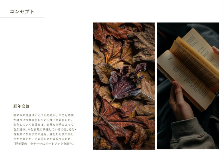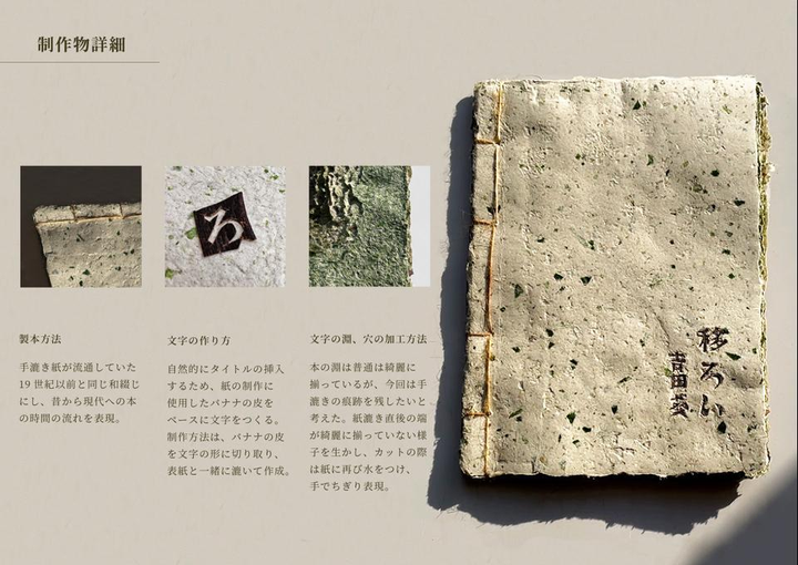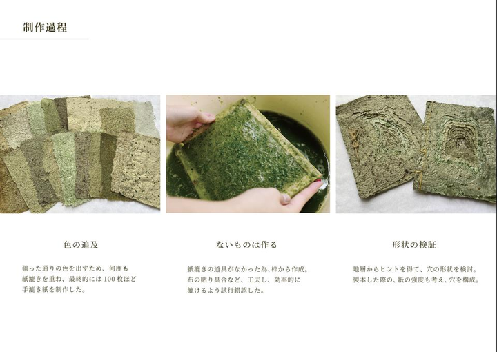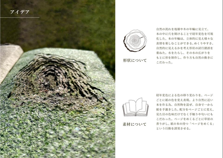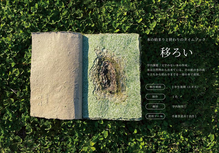 学内課題「文字のない本の作成」 本は自然物から出来ている。その紙の本の成り立ちから終わりまでを一冊の本で表現。