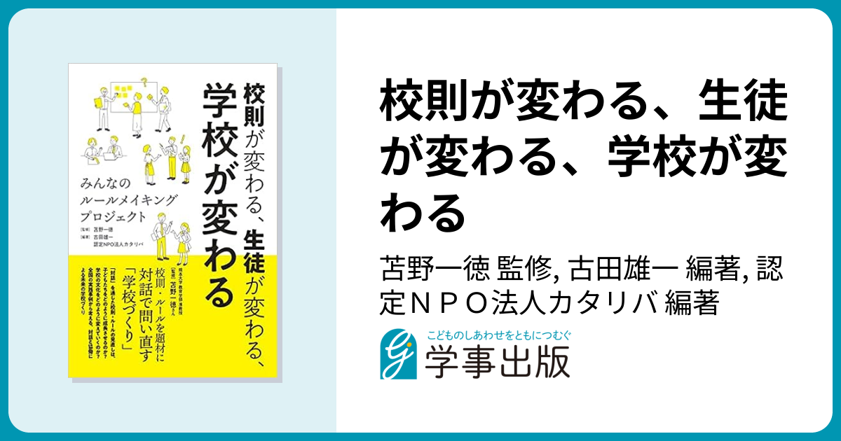 ▼参考記事 “校則は時代に合わせて変える” 生徒主体で見直す「ルールメイキング」という新常識 https://gendai.media/articles/-/85218?page=2 校則ってどう見直すの?全国の学校サポートのカタリバに聞いた https://www.nhk.or.jp/hiroshima/lreport/article/003/30/