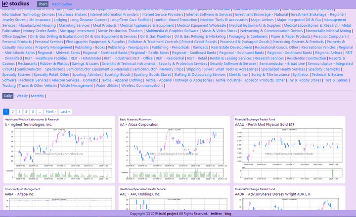 米国株専門サイト。 チャートを一覧で見たり、売買代金ランキングを時価総額付きで見ることができる。