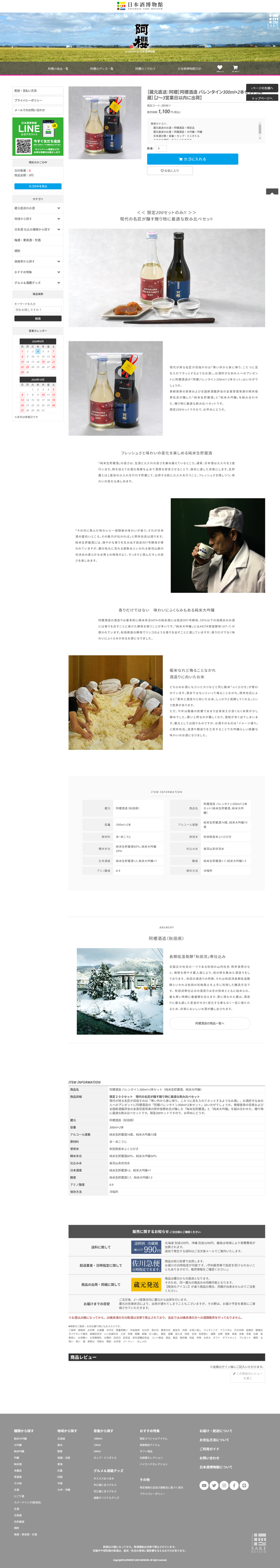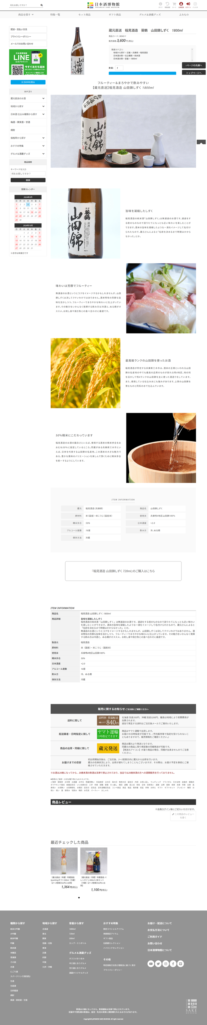 地酒専門のECサイト「日本酒博物館」の商品ページのコンテンツ。