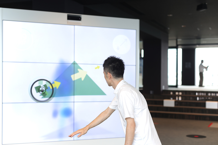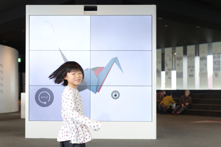 ひろしま、おりづるタワーの12階に設置されているアミューズメントコンテンツのひとつ「AIR」のテクニカルディレクターとプログラマーを担当。大きな折り紙を全身で折って遊ぶコンテンツです。