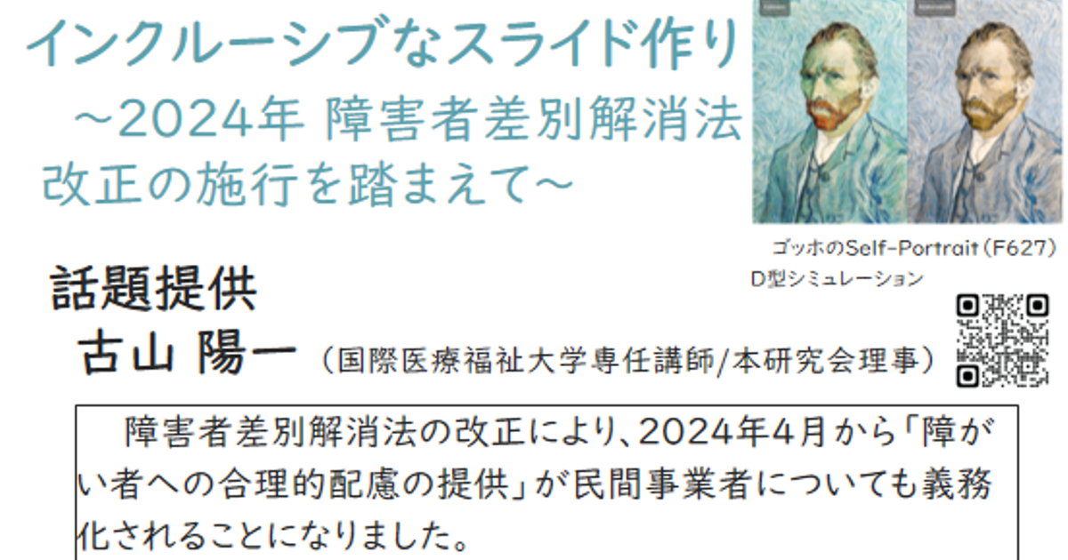インクルーシブ(inclusive)。所属先の大学では、『看護情報リテラシー』科目を担当。「看護学」の立場から、視覚に障がいを抱えた人や高齢者、外国籍の人などが排除されない情報デザインの技法について講義を行っています。ちなみに、専門は看護学(看護情報デザイン論)。〒286-8686 千葉県成田市公津の杜4-3 国際医療福祉大学 E棟A338研究室 E-mail: furuyama@ihwg.jp