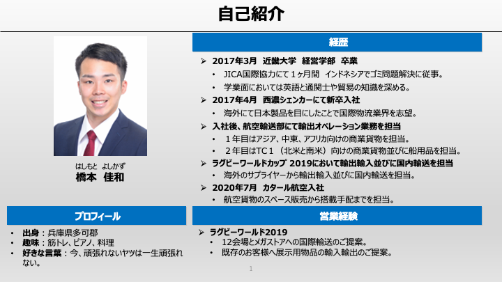 初めまして! 2017年に近畿大学を卒業し、これまでの業務について簡潔にまとめております。