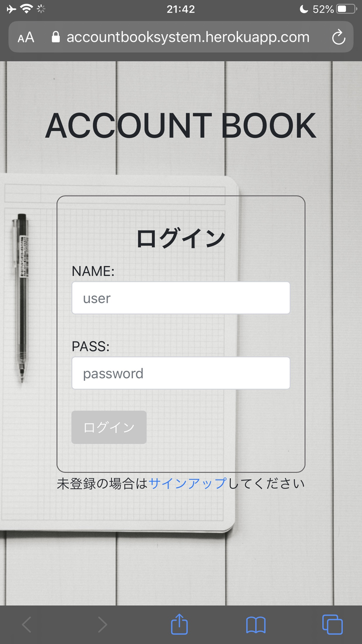 NO NAME家計簿アプリ言語はJava(Servlet&JSP)、HTML&CSS、Bootstrap、jQueryです。 eclipseを使用して開発しました。 Herokuを利用しています。 dbもHeroku Postgresを利用しています。accountbooksystem.herokuapp.com でさらに詳しく