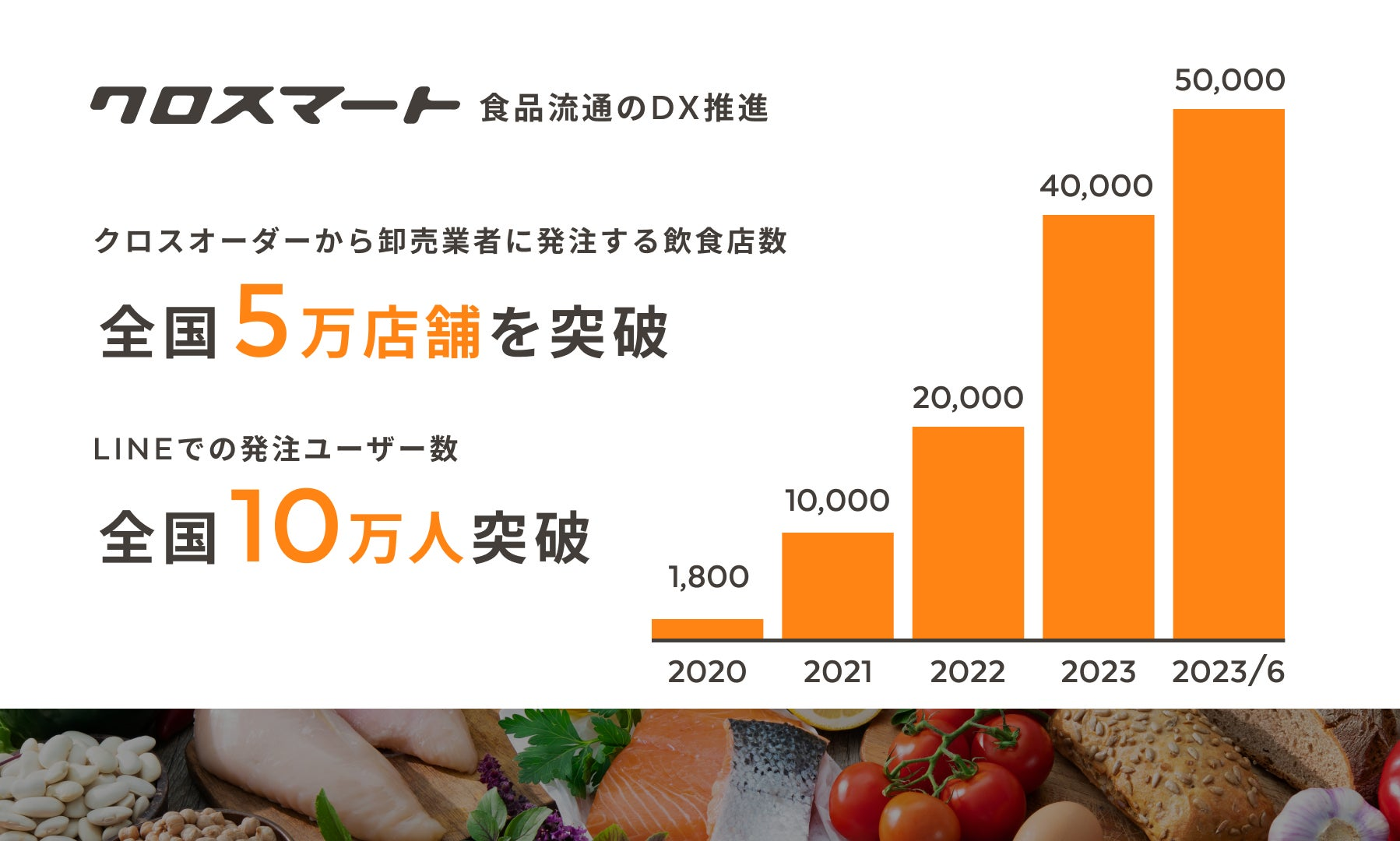 「想像力とテクノロジーで、外食産業の発展に貢献する」というビジョンのもと、外食産業のDXを推進しています。飲食店と卸売業者をつなぐ受発注プラットフォーム「クロスオーダー」、LINEを活用したオンライン販促機能「クロスオーダー販促」、電帳法に対応した請求書DX機能「クロスオーダー請求書」など、外食産業のアナログな業務をデジタル化すべく、さまざまなサ