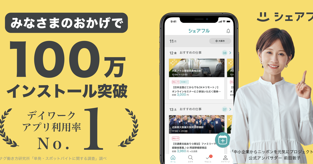 【100万DL突破】スキマバイトアプリ「シェアフル」が100万DLを突破いたしました!