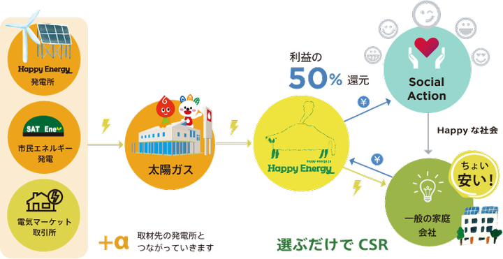 過疎化した地域の市民発電所の電力を東京・大阪で販売。利益の50%を子育て支援事業に投資しつづける。一粒で3度おいしい社会事業を展開しています。