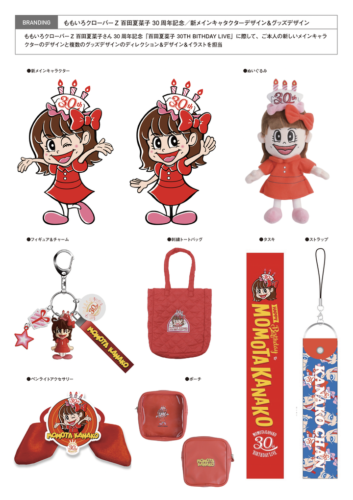 ももいろクローバーZ 百田夏菜子さん30周年記念「百田夏菜子 30TH BITHDAY LIVE」に際して、ご本人の新しいメインキャラクターのデザインと複数のグッズデザインのディレクション&デザイン&イラストを担当