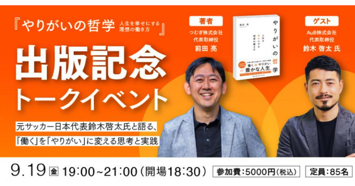 『やりがいの哲学』〜人生を幸せにする理想の働き方〜出版記念トークイベント 〜元サッカー日本代表・AuB株式会社 代表取締役 鈴木啓太氏と語る、「働く」を「やりがい」に変える思考と実践〜