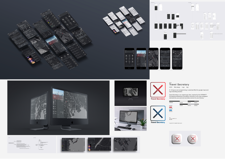 UI/UX Web design Logo App A UI layout, json programming ( customize Mod for google map) and logo branding practice Travel Secretary is an original app idea, inspired by the HITMAN™. Provideing professional consultancy services in any route navigation demands as your personal secretary service for your itinerary.