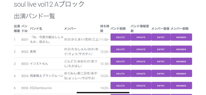 サークルライブ出演バンド管理アプリ